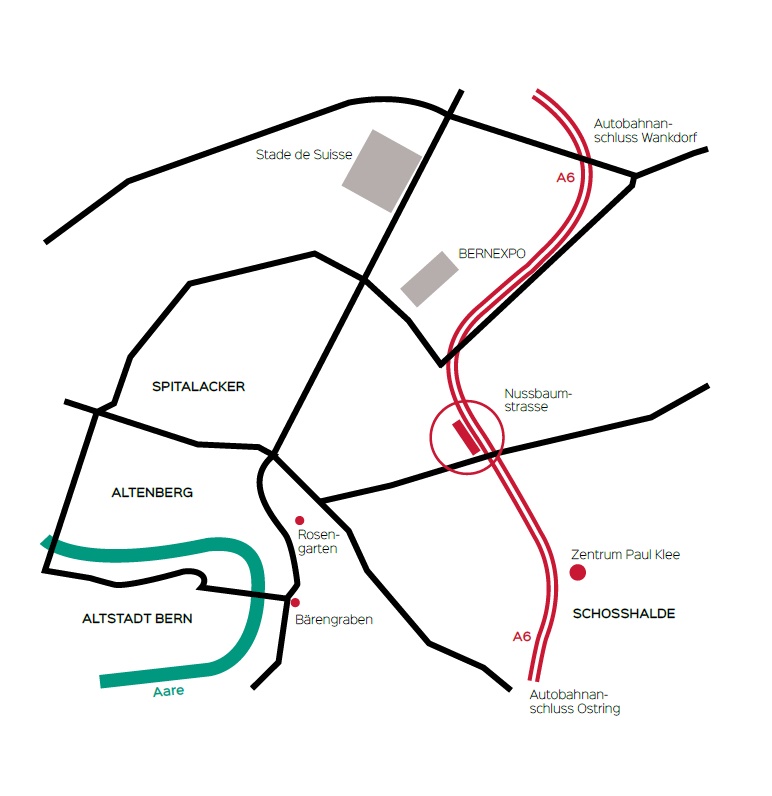 Die vier Tower an der Nussbaumstrasse erheben sich als moderner Gebäudekomplex über der Autobahn, von wo Ihre Gebäudebeschriftung von tausenden vorbeifahrenden Mobilisten jeden Tag gesehen wird.